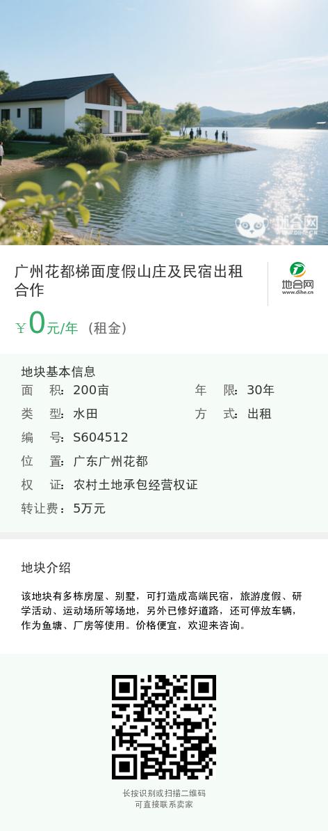 广州花都梯面度假山庄及民宿出租合作